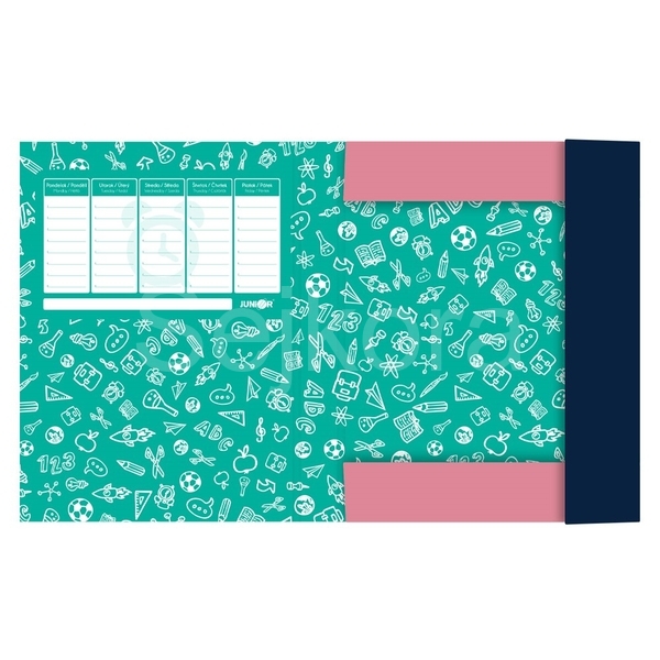 Nezbytná součást vybavení každého školáka pro uložení sešitů a knih. vnitřní tři chlopně chrání sešity a knihy proti poškozenímateriál: odolný, pevný karton s potiskemvnitřní šířka hřbetu: 4 cm